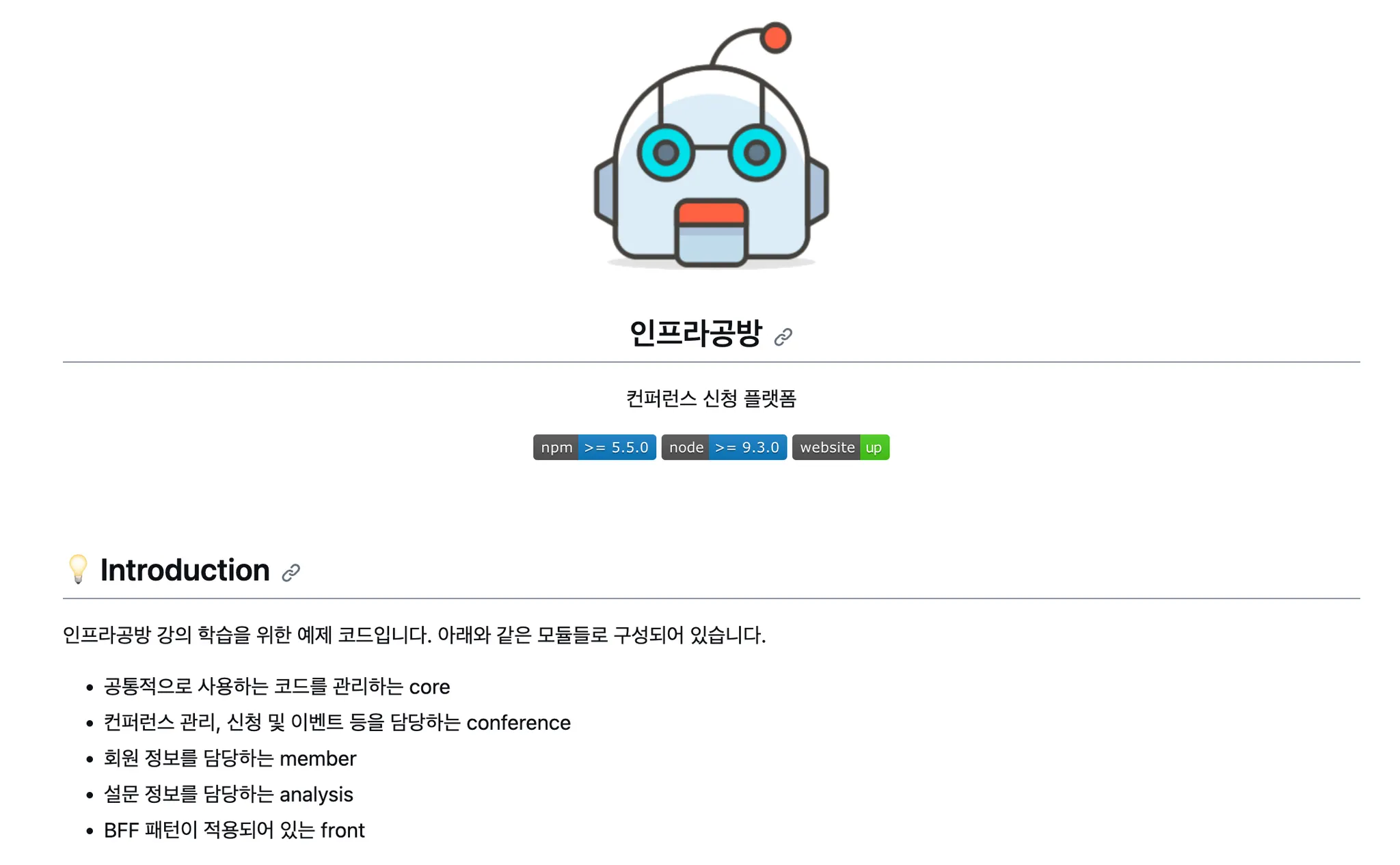 예제 서비스는 “지하철 노선도”와 “컨퍼런스 신청 플랫폼” 입니다.