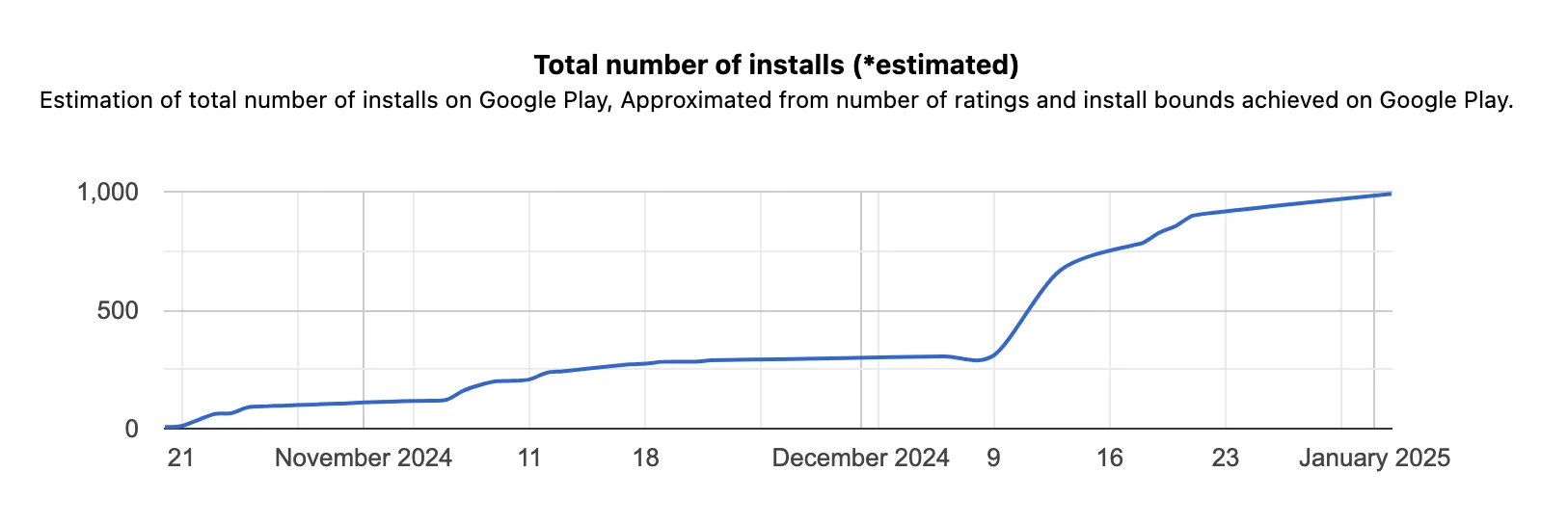 Google Play 상 누적 다운로드 성장 지표 추정치 (안드로이드 만 해당)