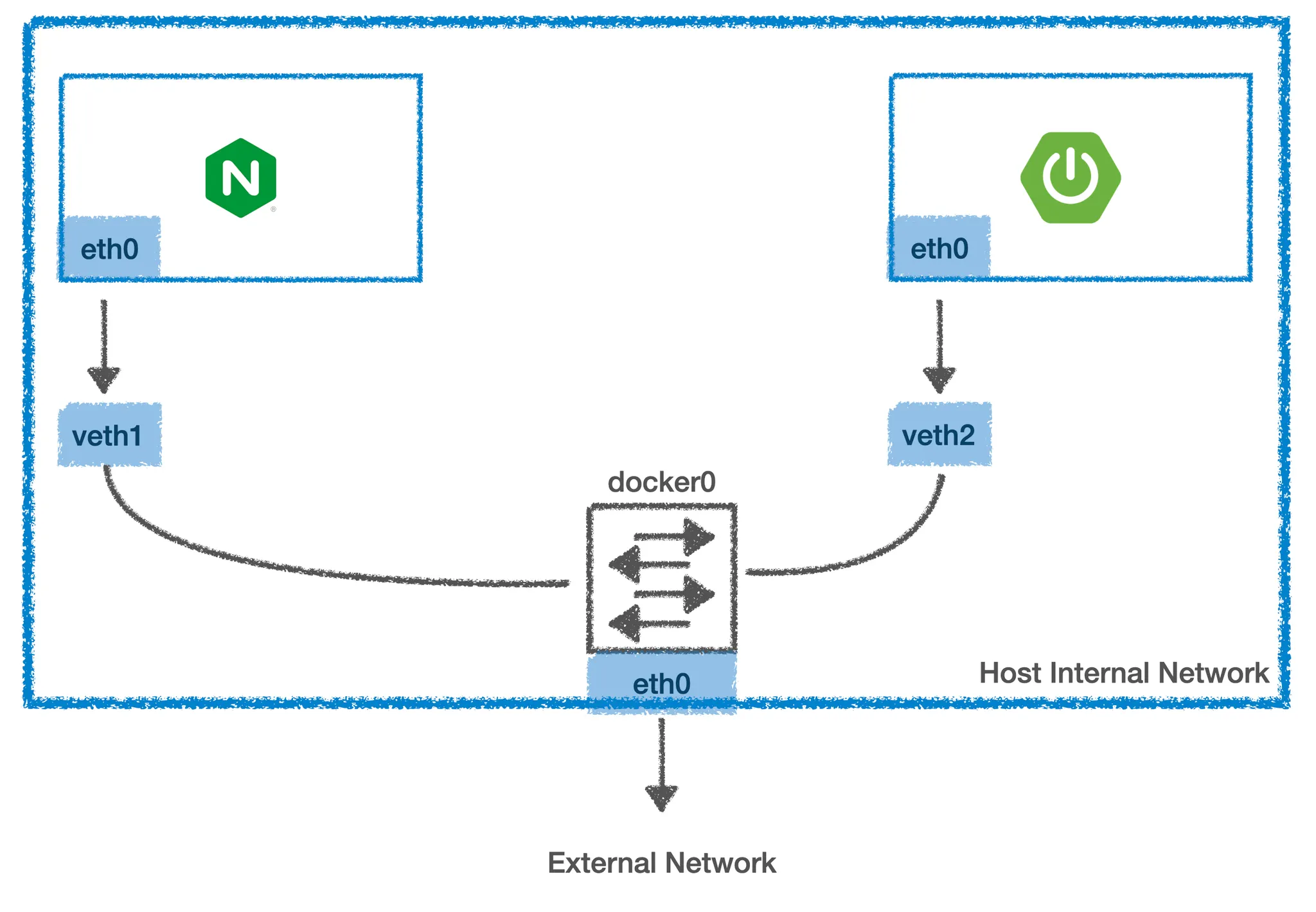 도커는 위에서 언급한 veth interface와 NET namespace를 사용해 네트워크를 구성합니다.